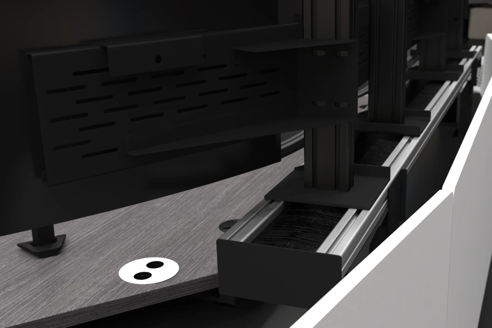 Gamme Tec’ est un système de meubles conçu pour l’aménagement de salles techniques et de conduite.